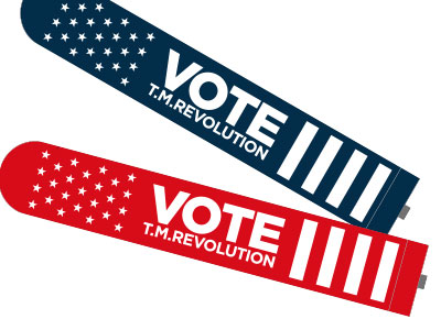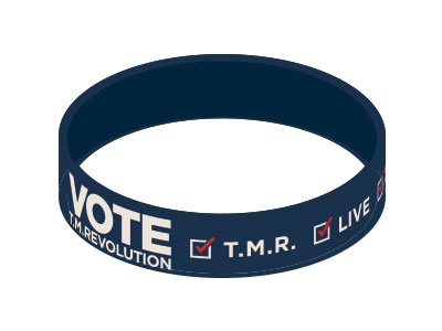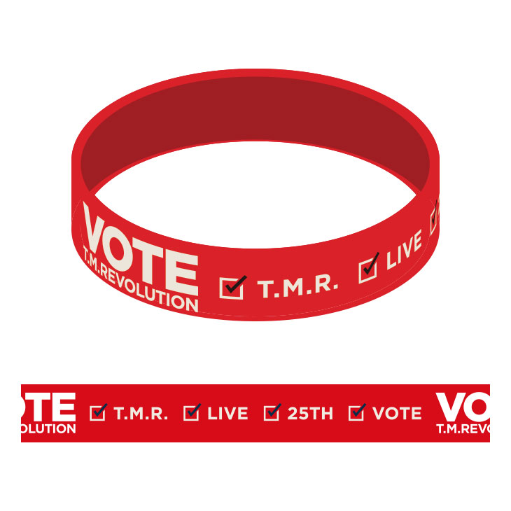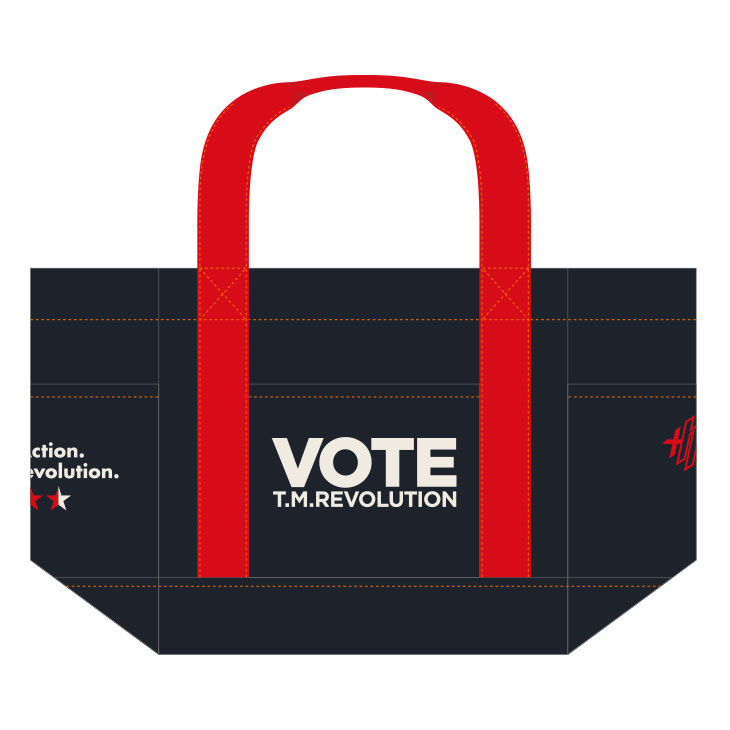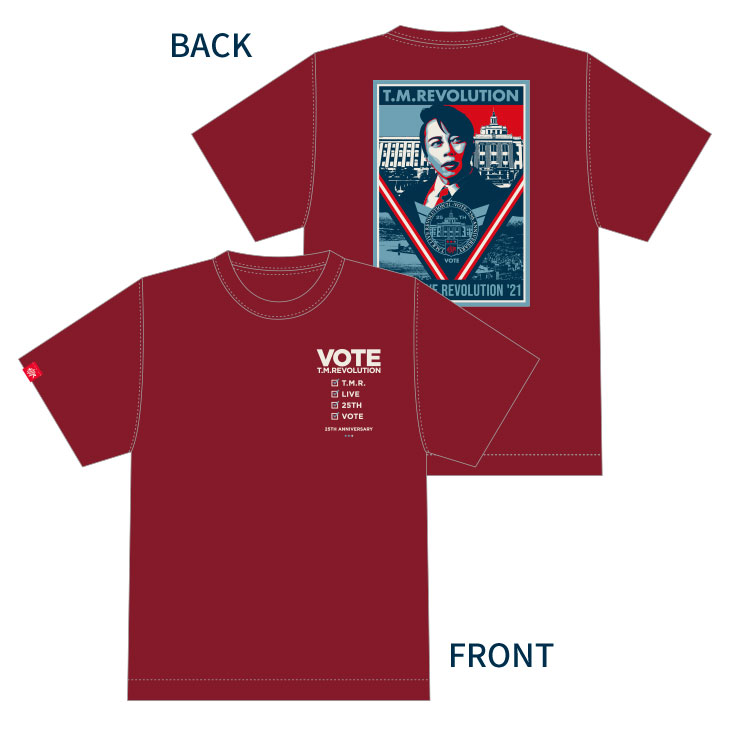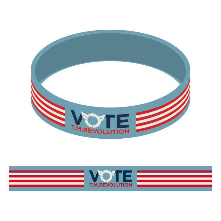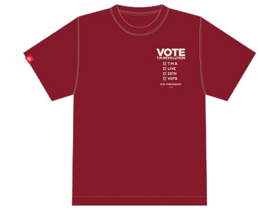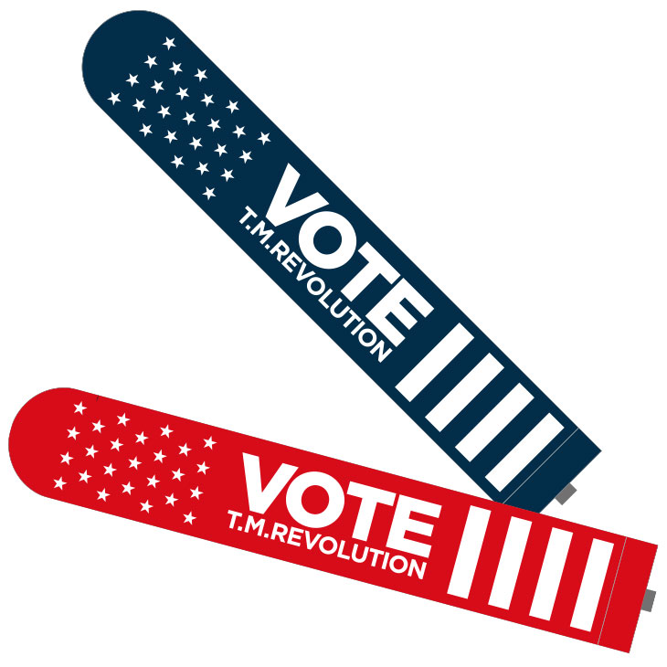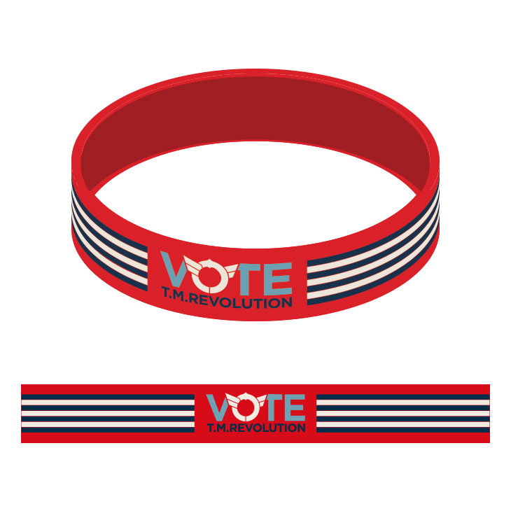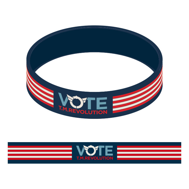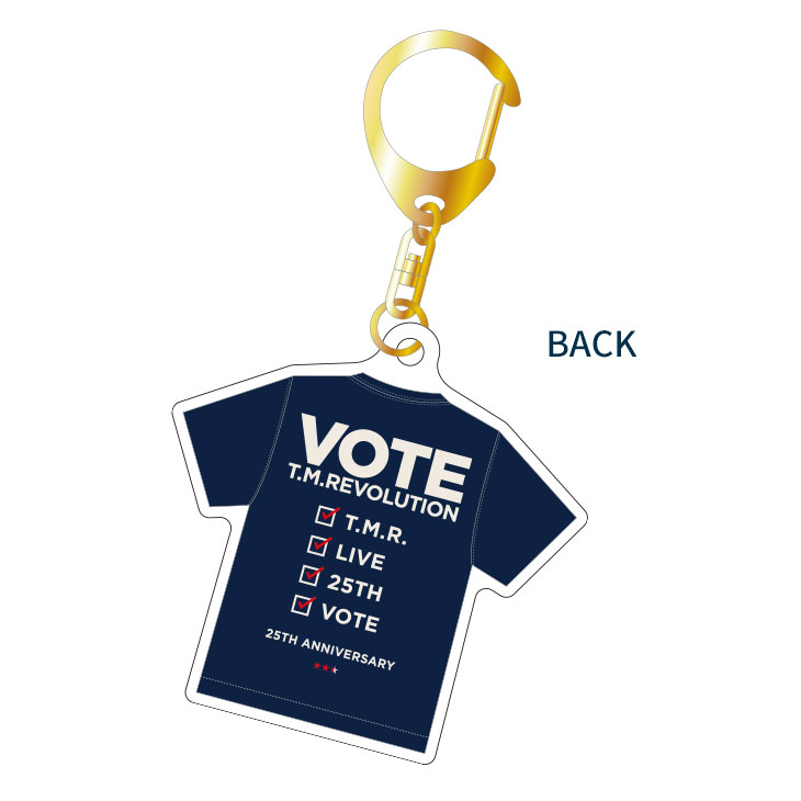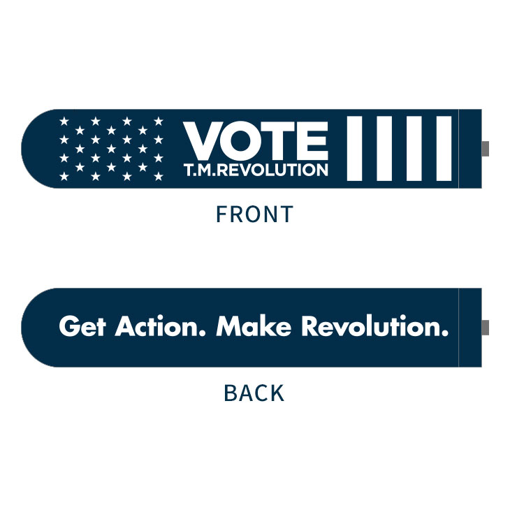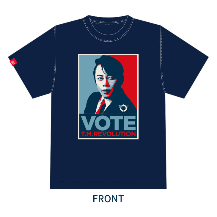 "VOTE"イメージやT.M.R.ロゴデザインのピンバッジ。