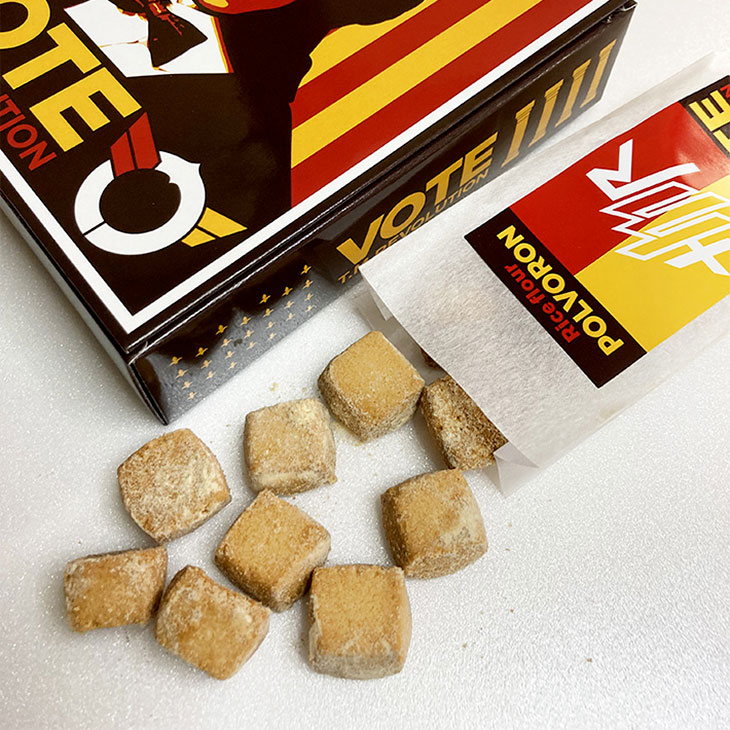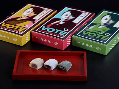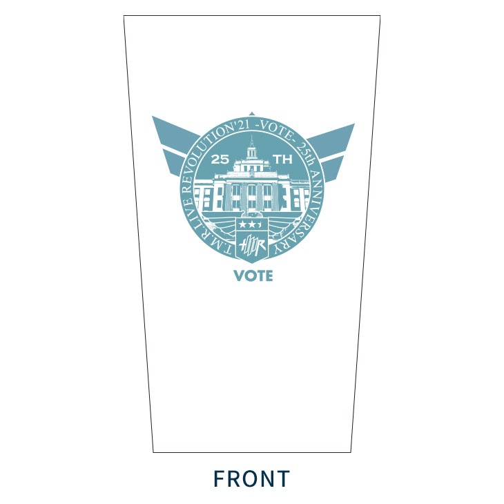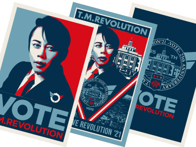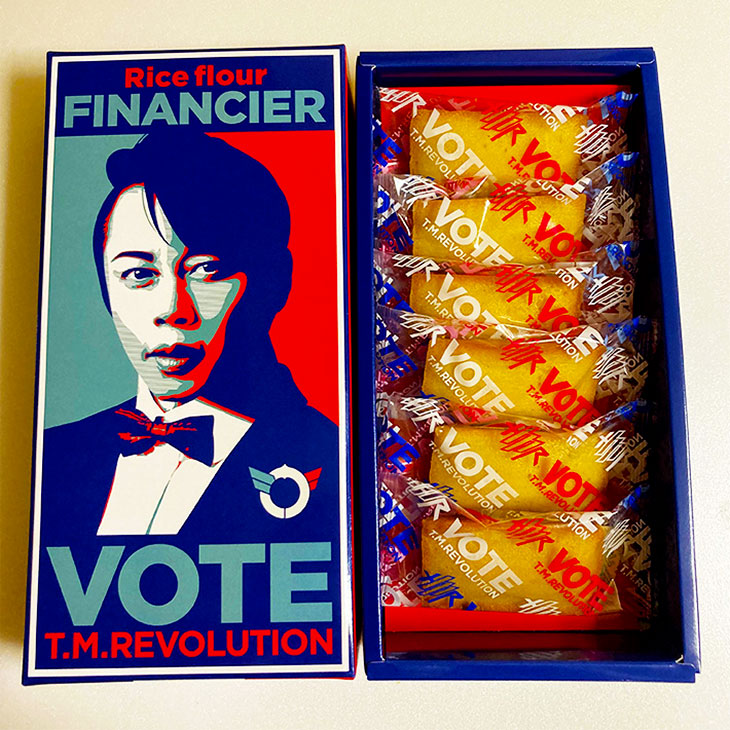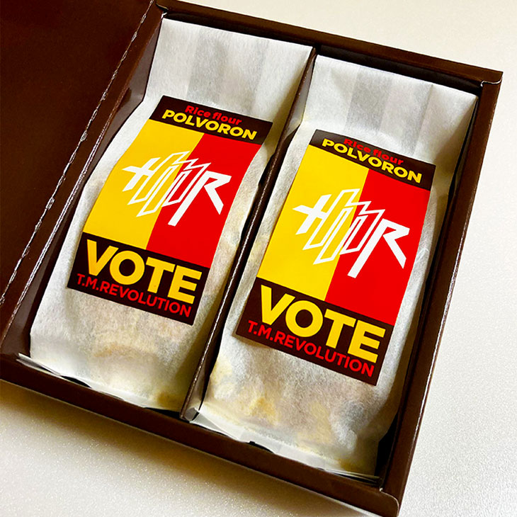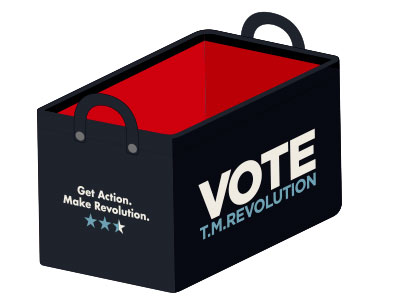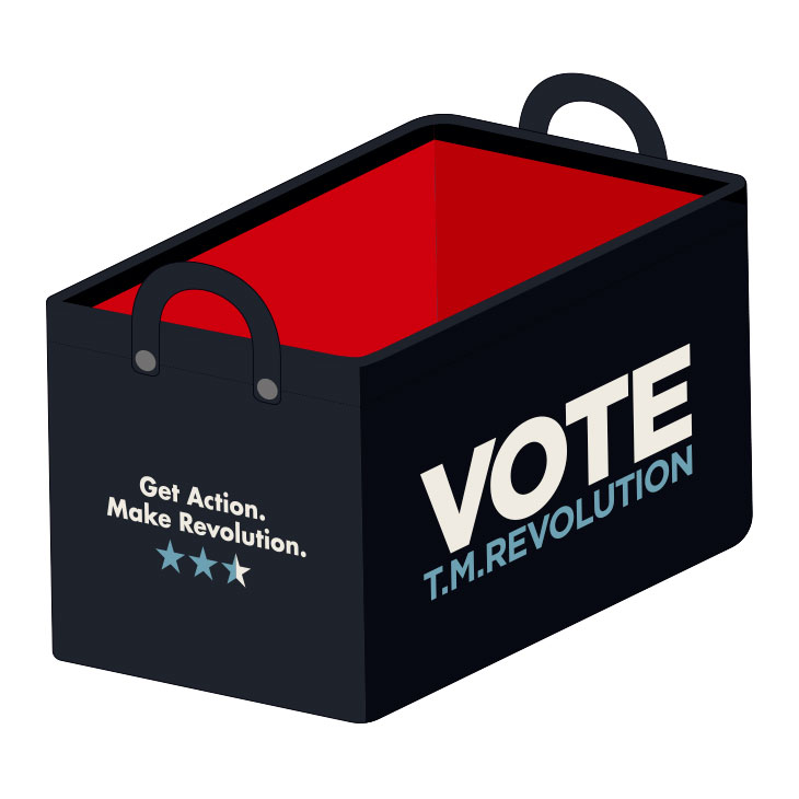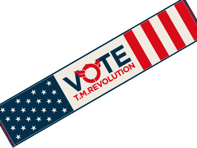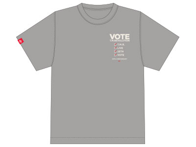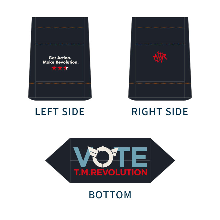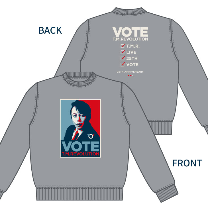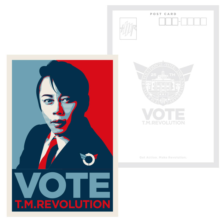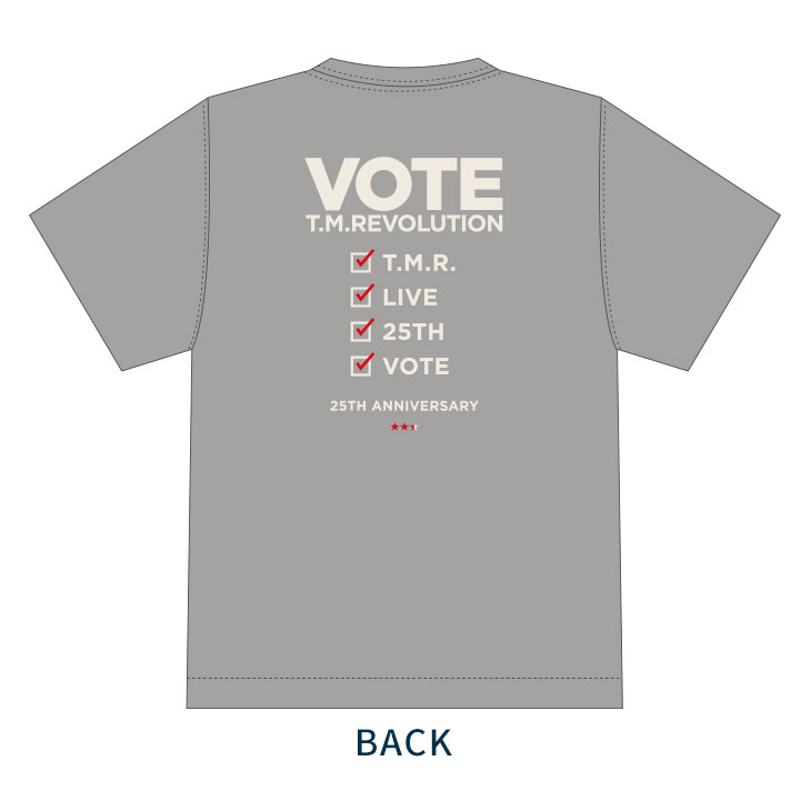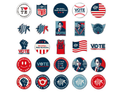"VOTE"イメージやT.M.R.ロゴデザインのピンバッジ。
