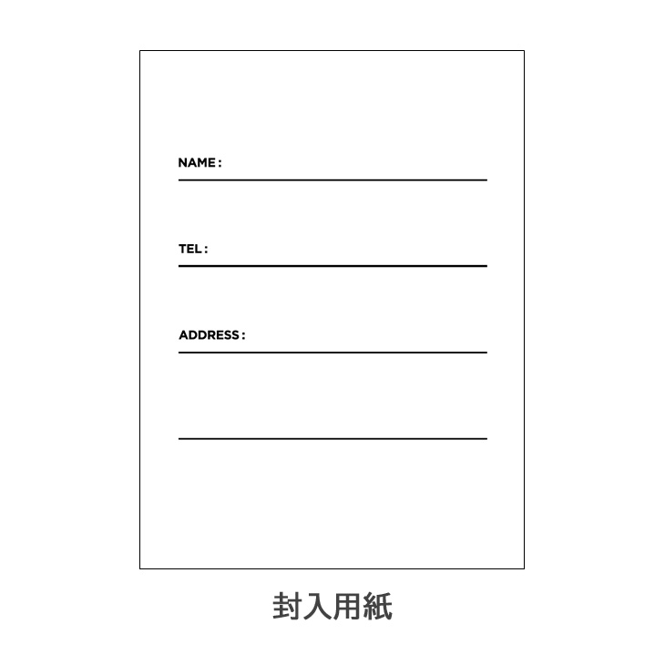 名前、住所、電話番号が書ける用紙も1枚封入。価格